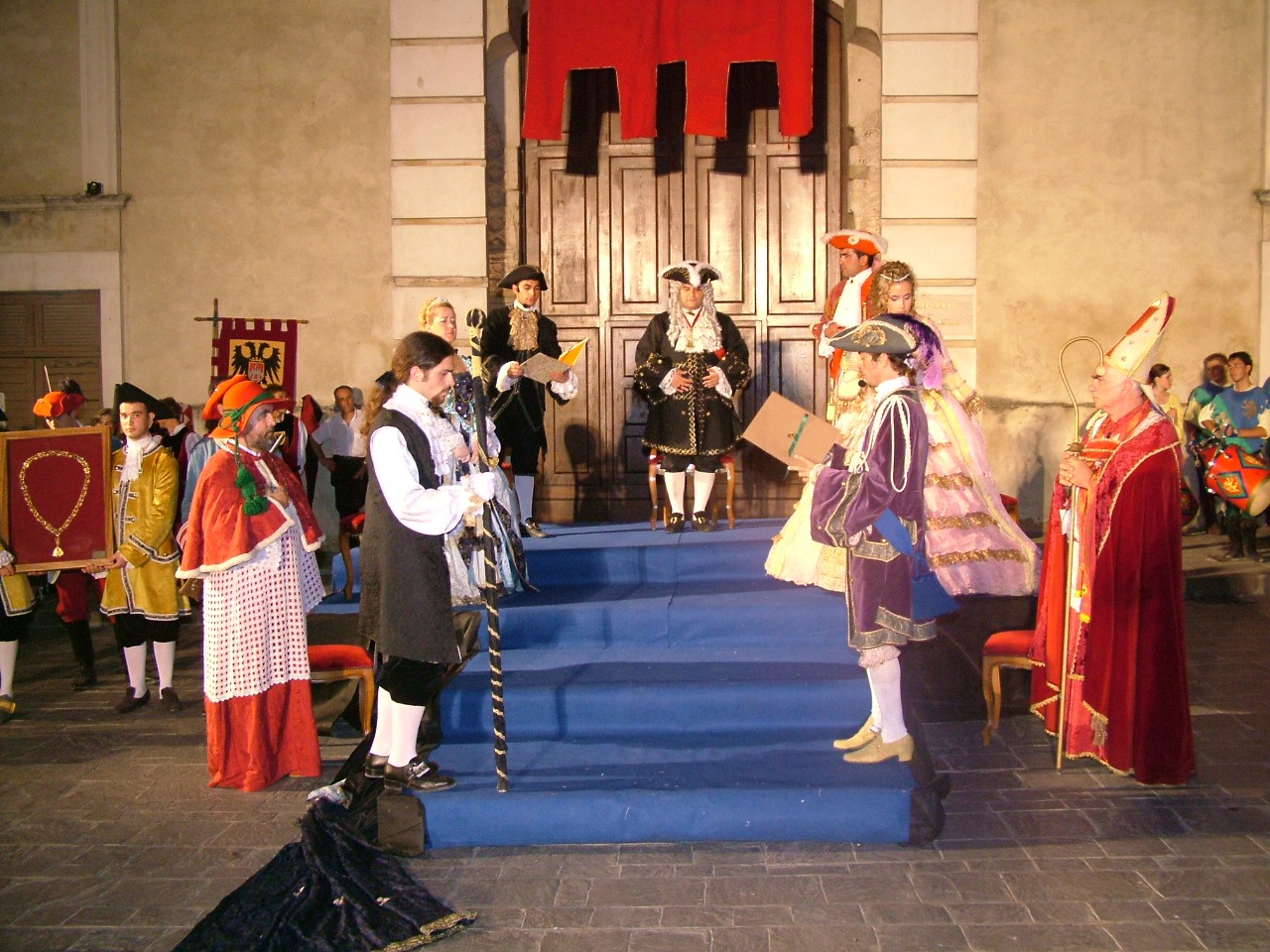 Nella ricostruzione storica odierna, dopo il rito della Collazione, al canto solenne dell'Alleluja, le Illustri persone si mostrano dal balcone e salutano la folla per dare poi inizio ai festeggiamenti di corte.